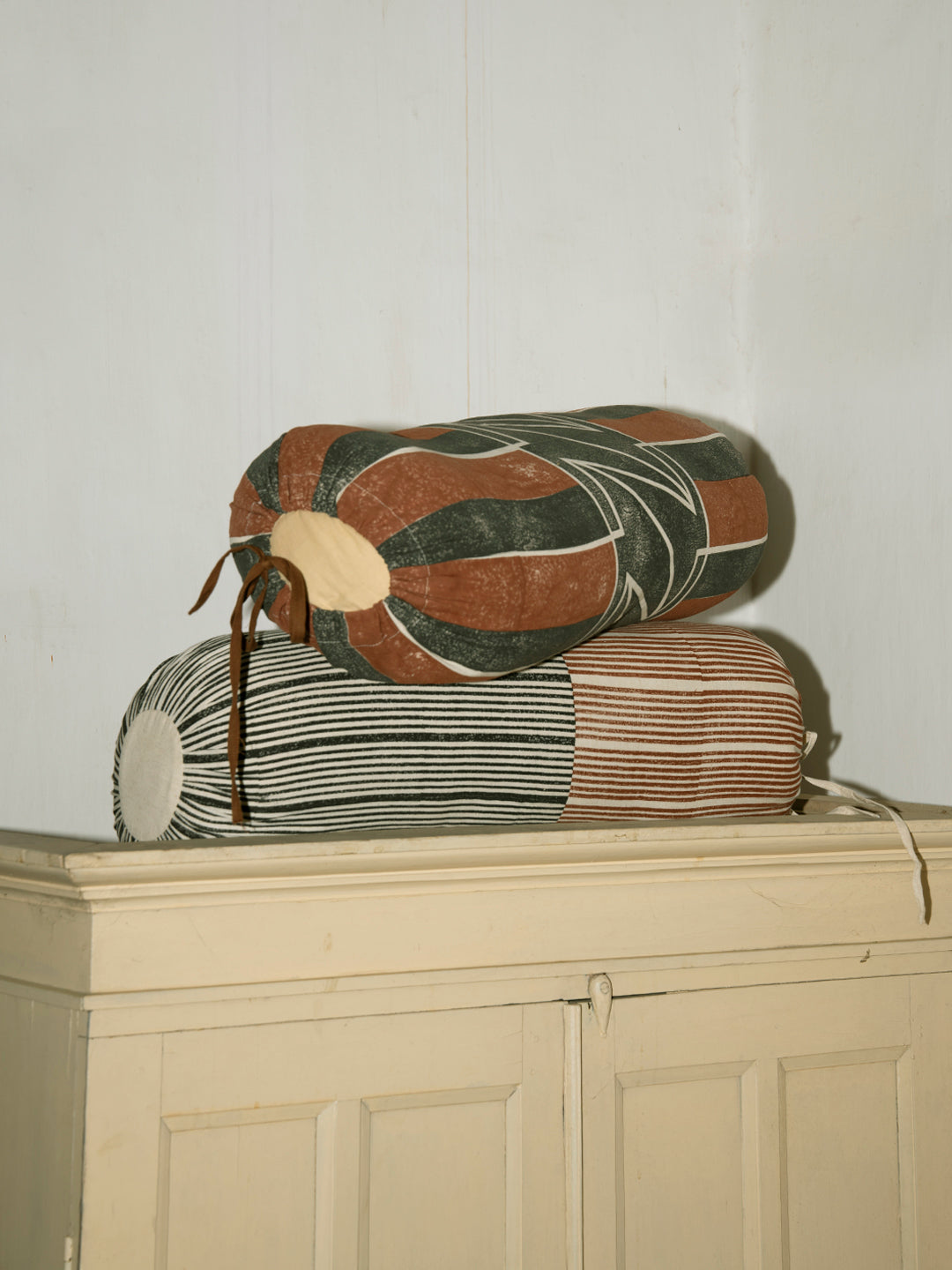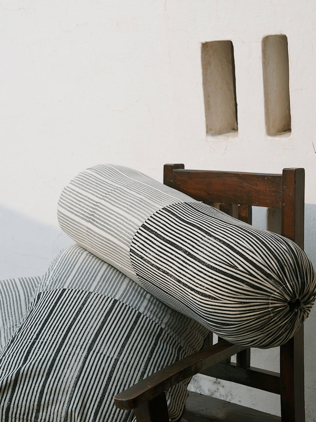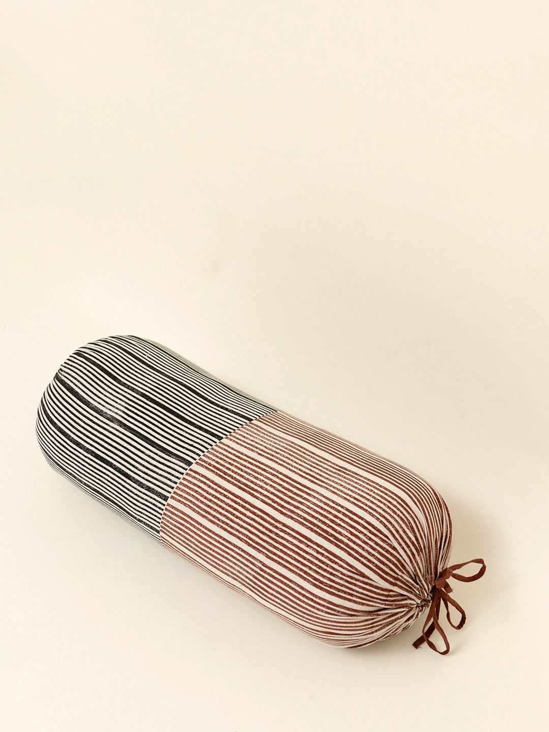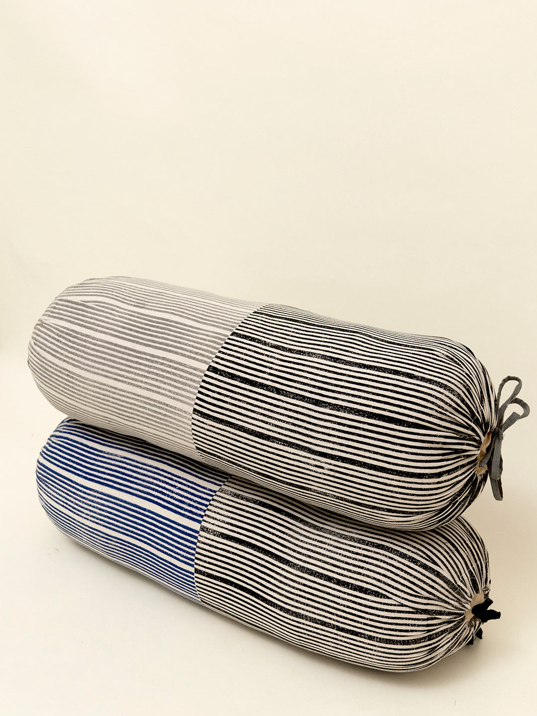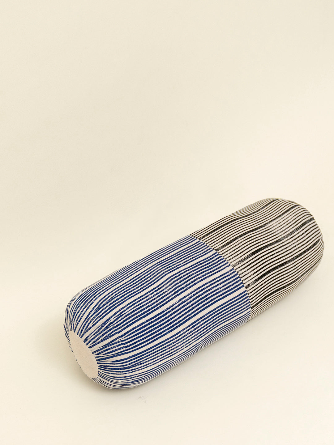 Our Maniyar bolster cover is a simple yet bold composition of lines printed using hand carved wooden blocks on humble cotton flex. It is perfect for adding dimension and texture to quiet corners. Available in three colour variants: Eenta, Koyala, and Mashi.