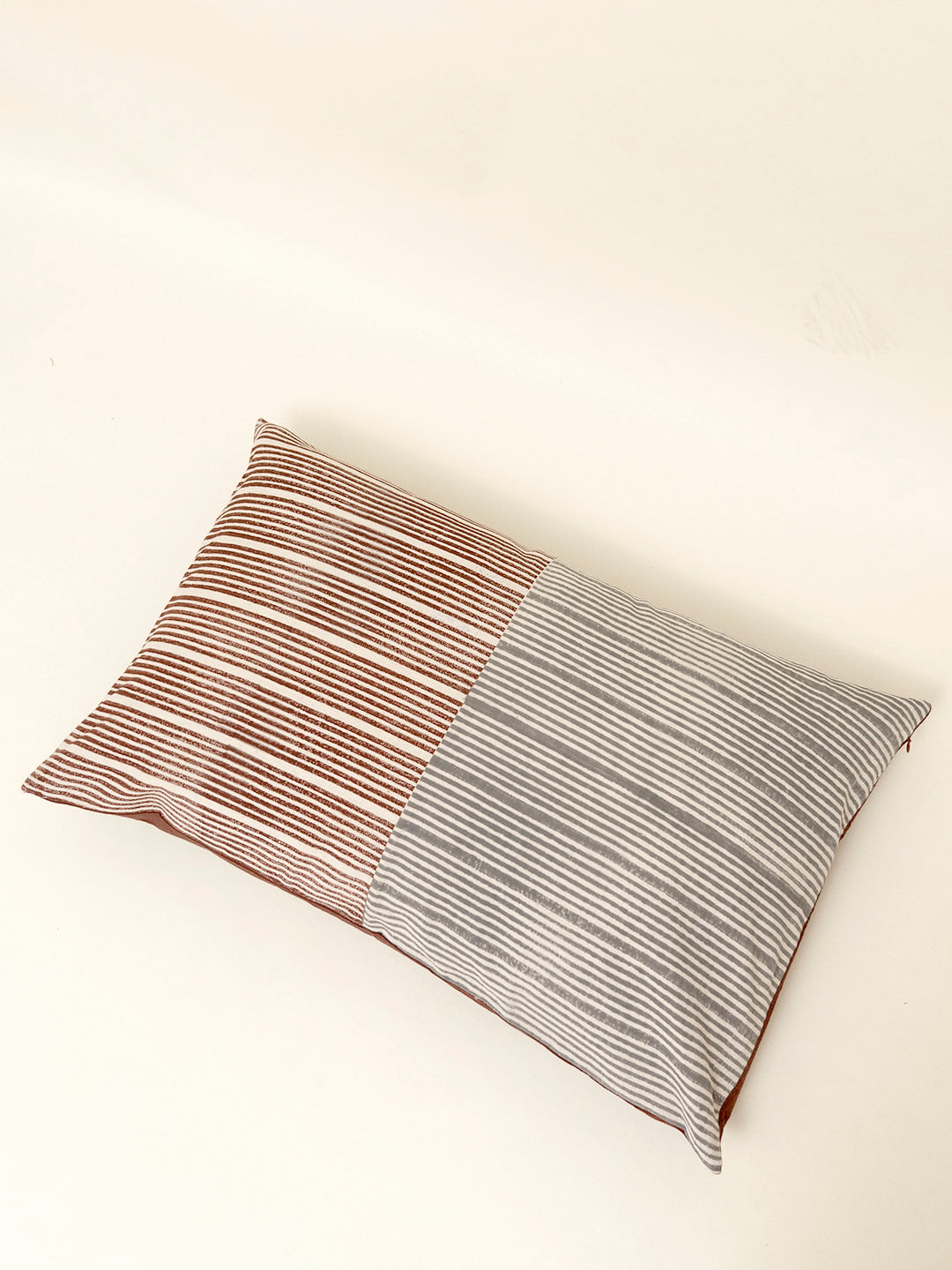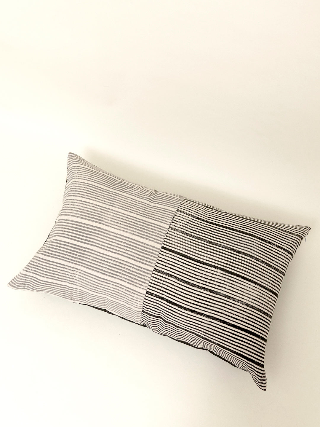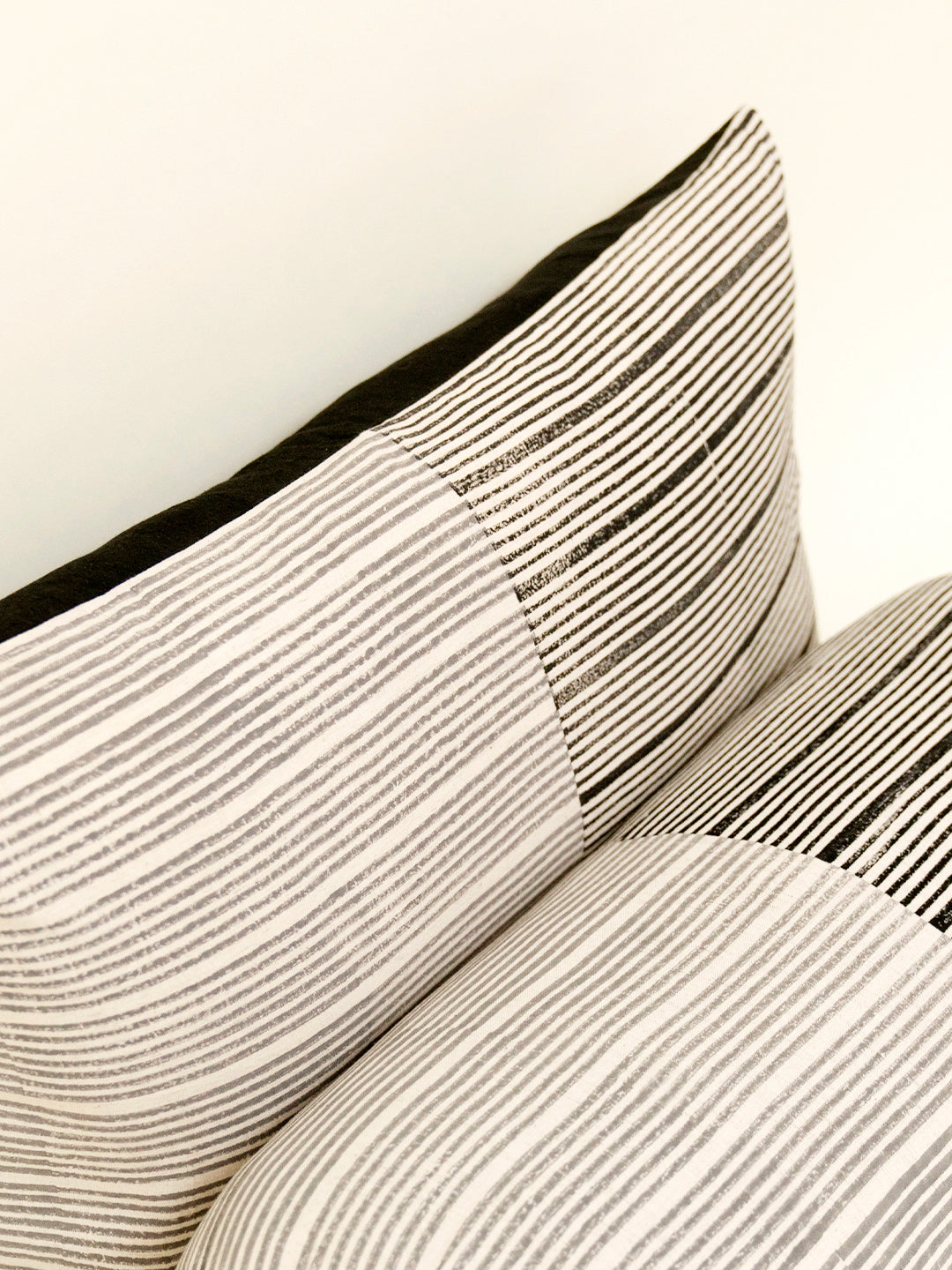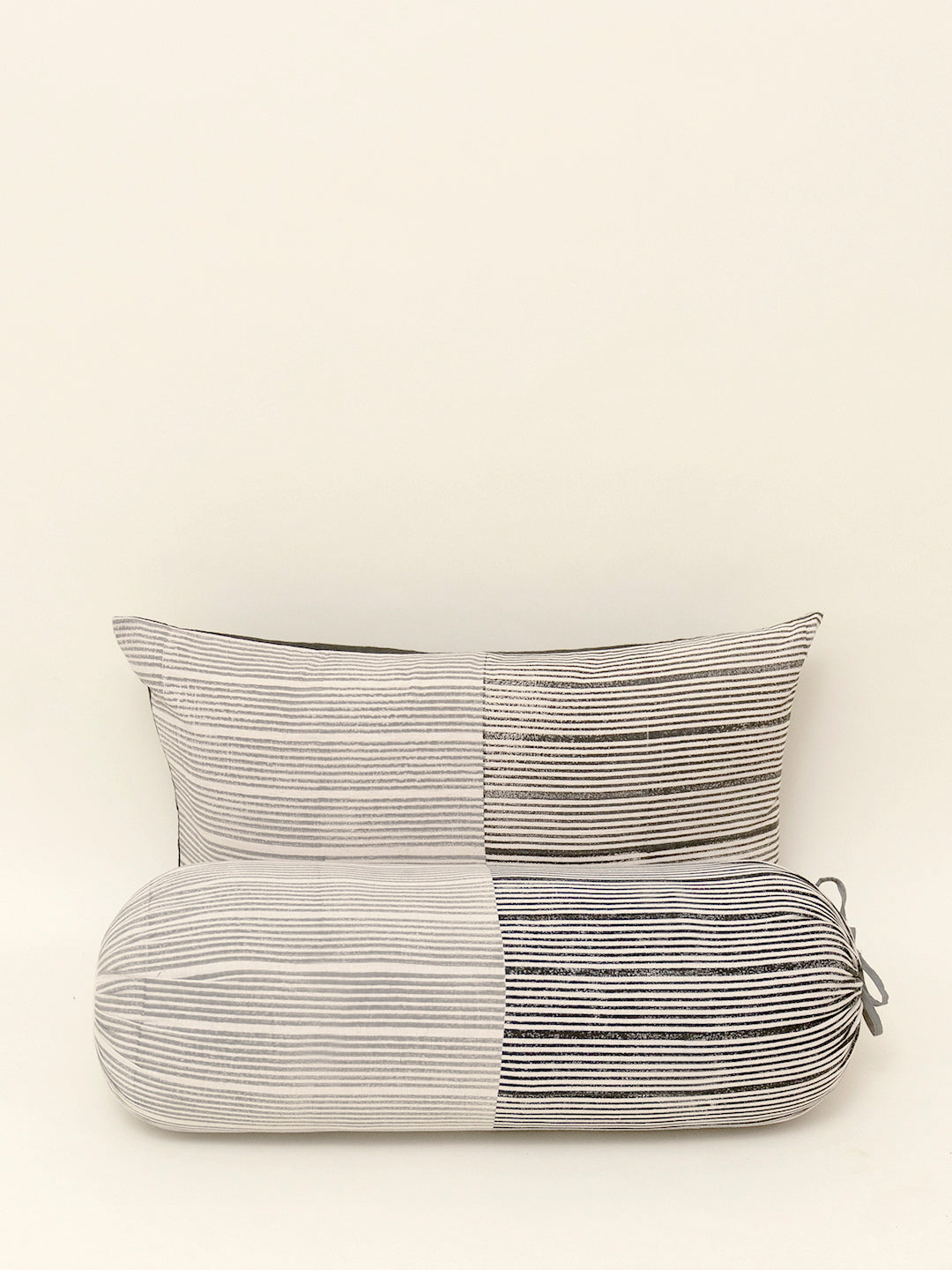 Our Phephana pillow cover is a simple yet bold composition of lines printed using hand carved wooden blocks on humble cotton. It is perfect for adding colour and texture to your quiet corners.