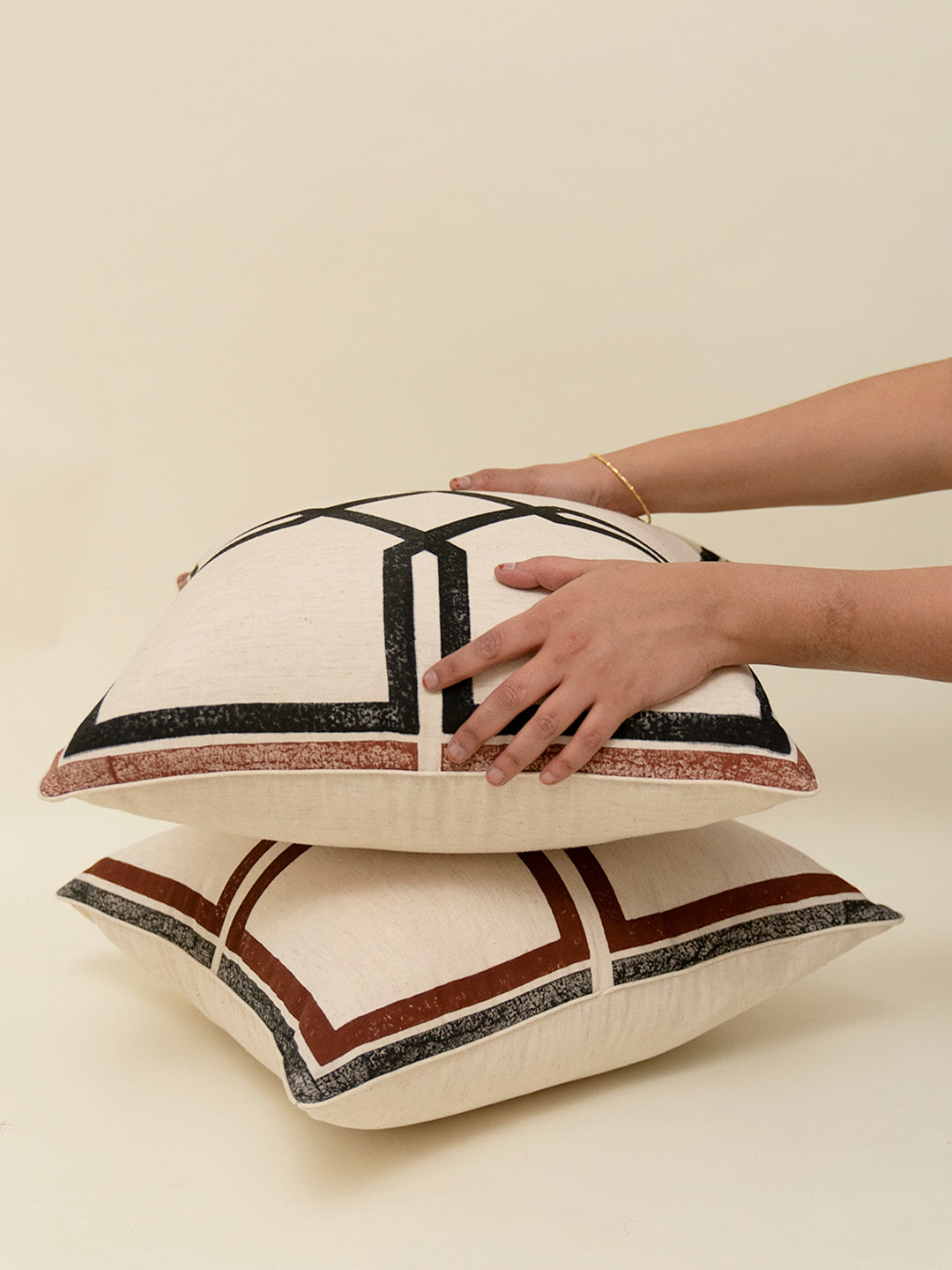 Our Azam Twin Set cushion covers add a bold yet quiet character to your living spaces.