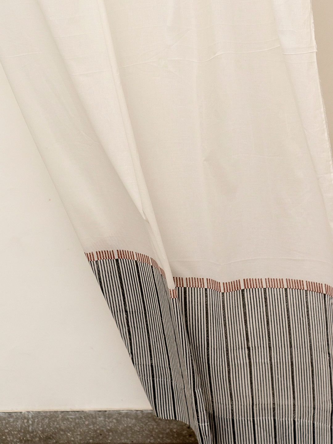 Our Sohaon translucent mull cotton curtains feature imprints of hand carved wooden blocks derived from window grills. Easy to wash and maintain, they are perfect for everyday living.